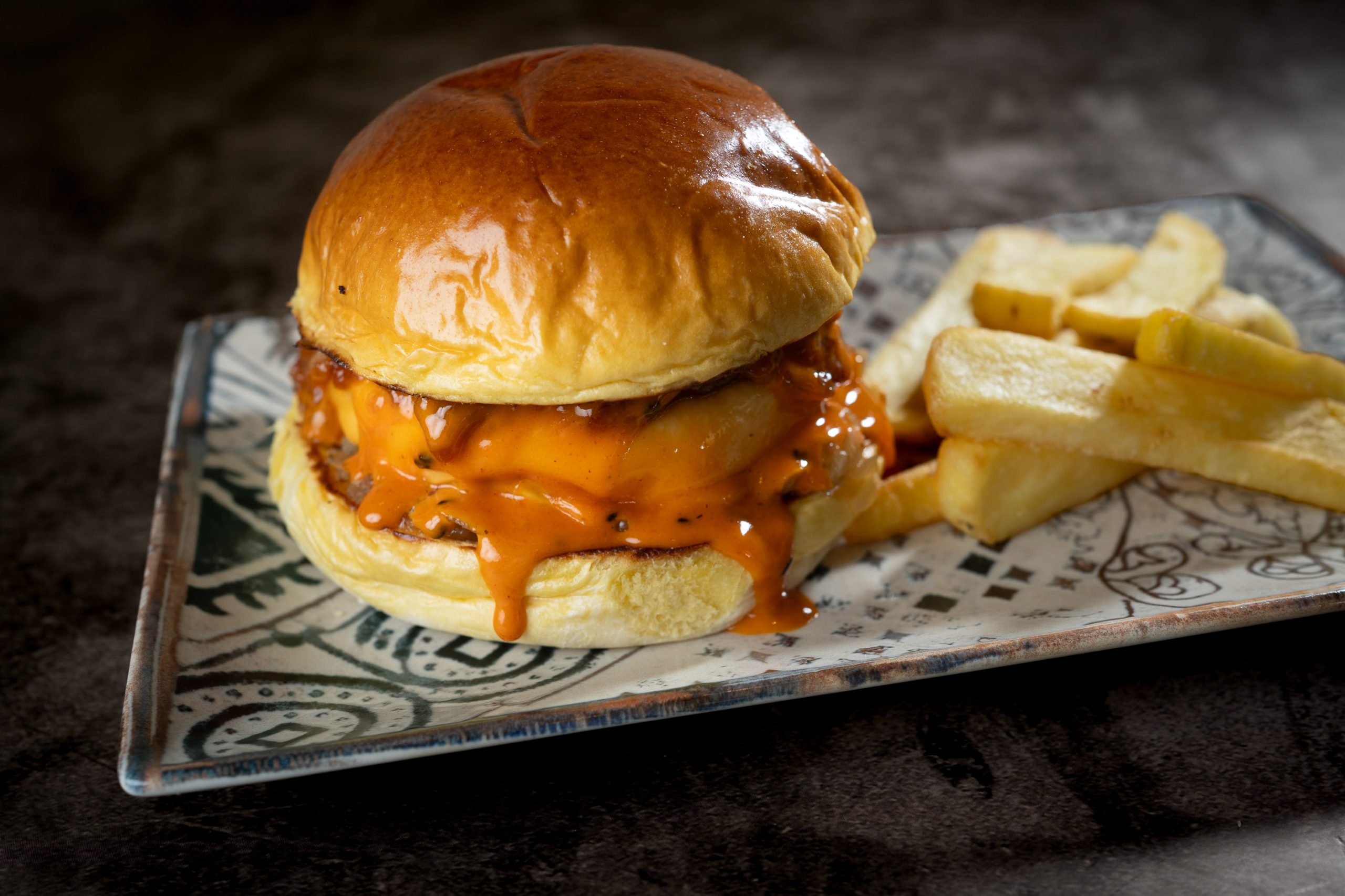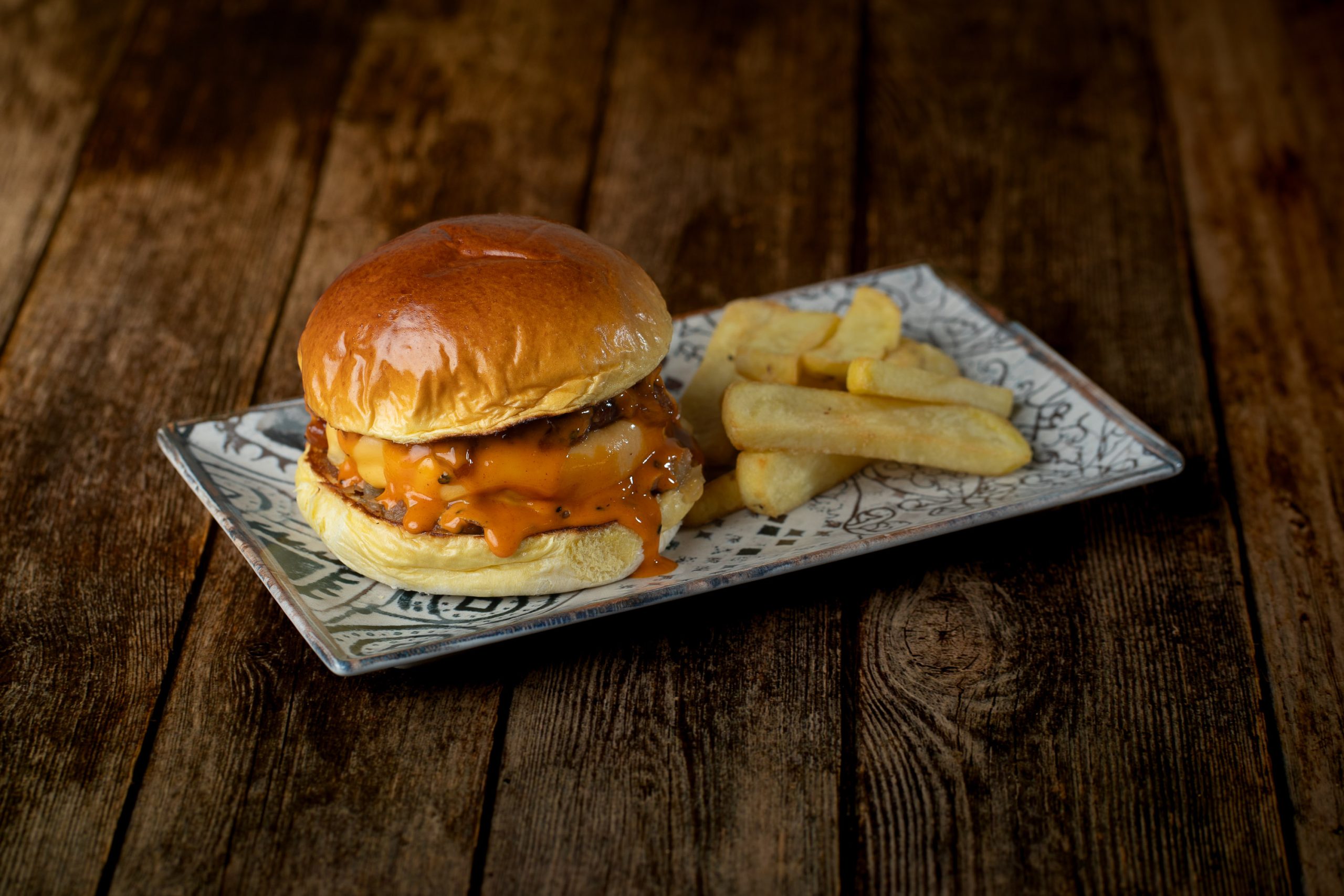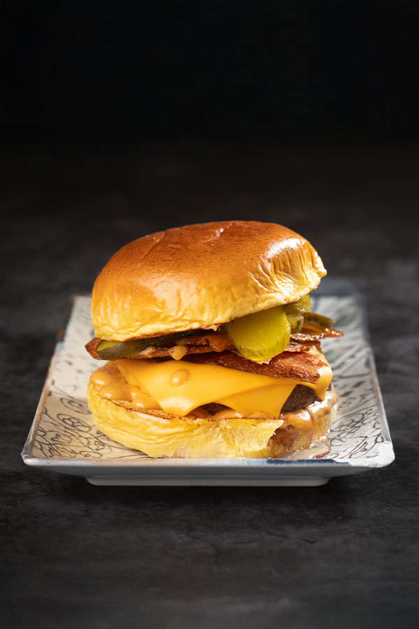 Carne, doble de queso, mermelada de bacon, salsa emily.