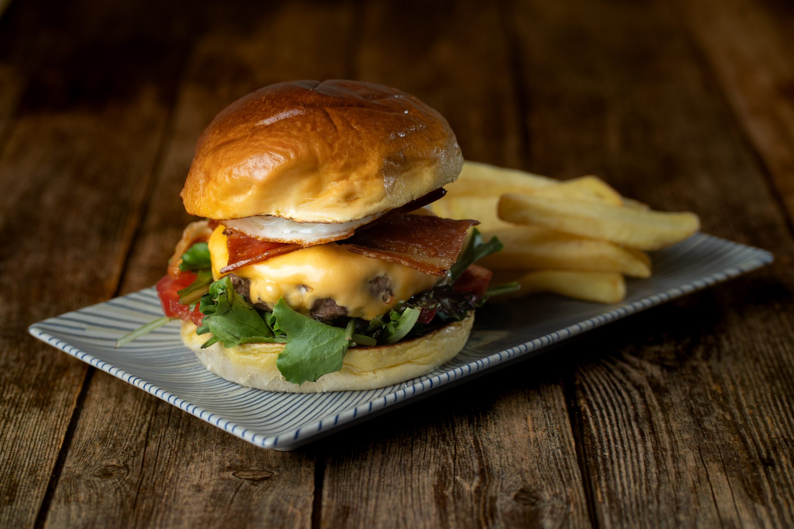180gr de carne, queso, huevo, lechuga tomate y bacon.